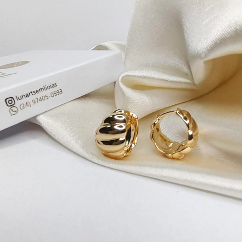 Esse modelo de argola croissant tem design de linhas diagonais que trazem um toque de modernidade ao look. Por ser um brinco clássico, você pode montar várias composições.