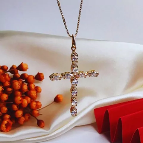 Um colar que tem uma imagem admirável! Você que gosta de acessórios mais religiosos é o colar ideal. Cravejado com zircônia cristal Navete deixando esse colar ainda mais encantador.