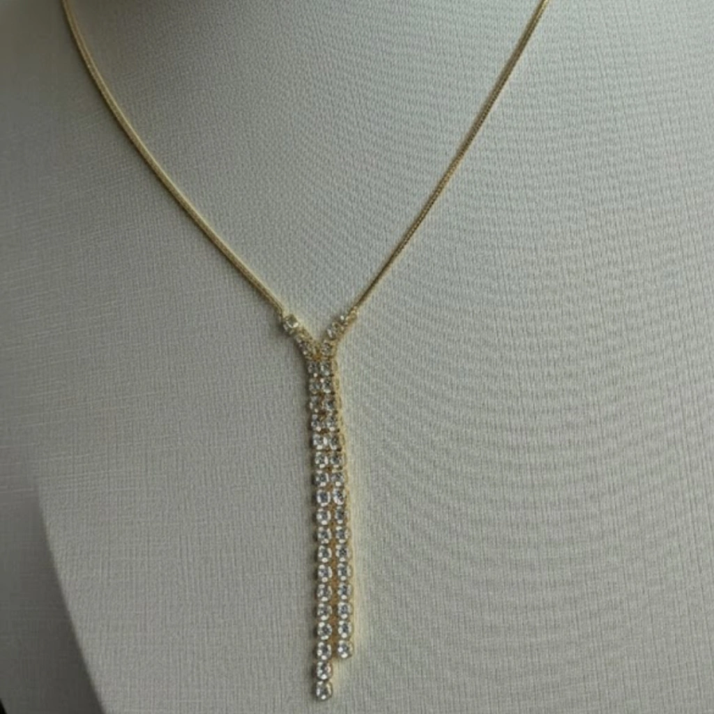 O Colar Gravatinha com Riviera nas Pontas é uma peça luxuosa e sofisticada, que combina o design alongado e moderno do modelo gravatinha com o brilho intenso da malha Riviera, criando um acessório deslumbrante e cheio de movimento.